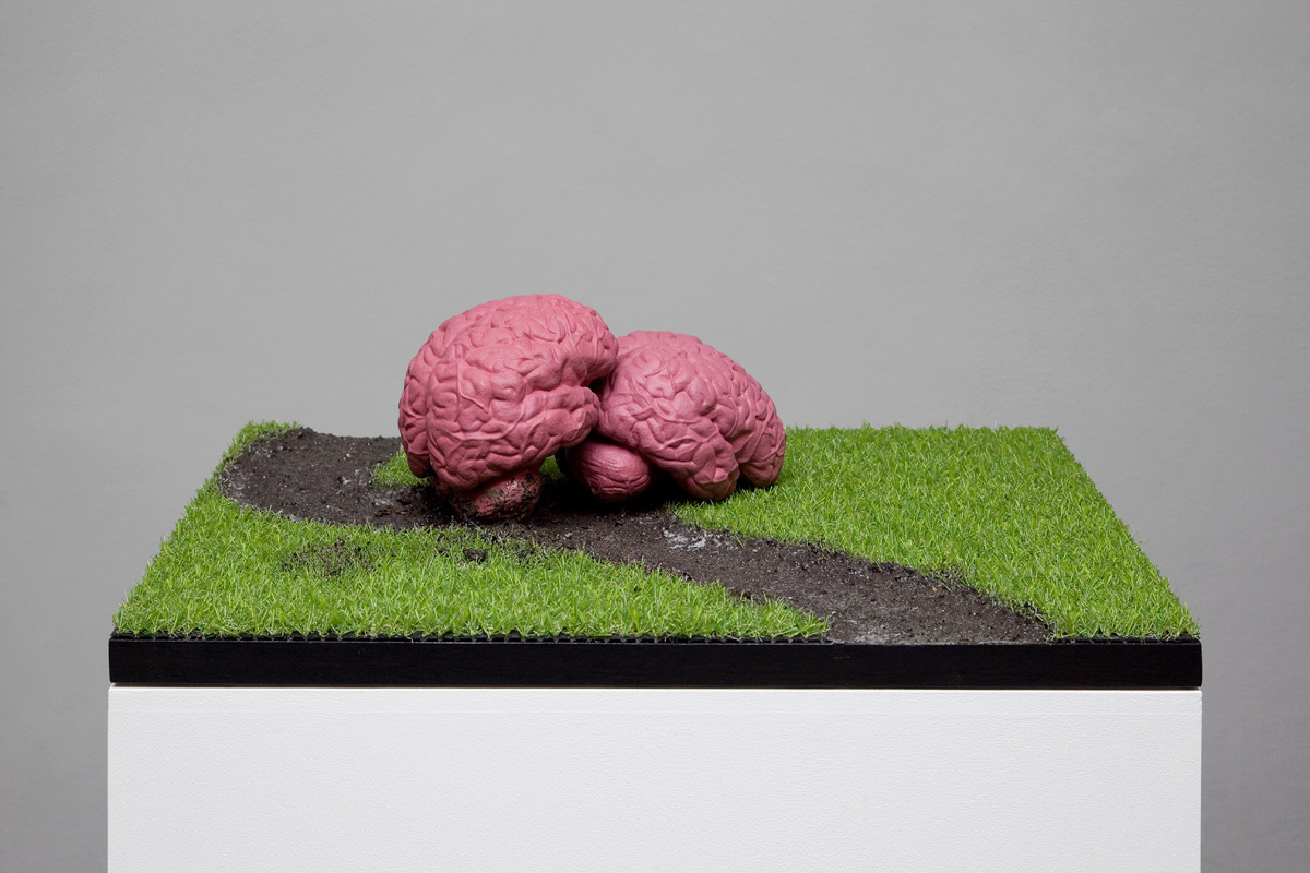 Soil, acrylic, artificial turf, plaster, acrylic paint, chipboard, base /